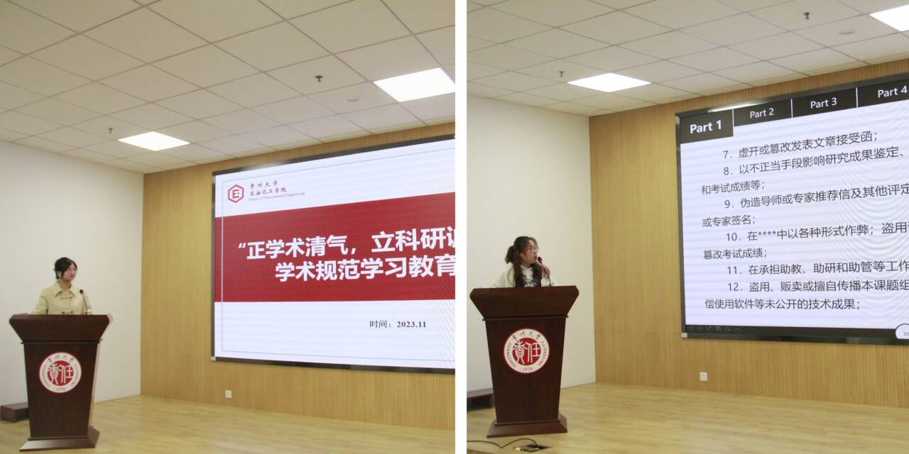 為引導(dǎo)研究生自覺遵守科學(xué)研究規(guī)律,強(qiáng)化學(xué)術(shù)規(guī)范意識(shí),近日,我院在測(cè)試樓B109報(bào)告廳舉辦以“正學(xué)術(shù)清氣,立科研誠(chéng)信”為主題的研究生學(xué)術(shù)規(guī)范學(xué)習(xí)教育宣講會(huì)。本次宣講會(huì)由仲之陽(yáng)和張纖纖同學(xué)主講,各年級(jí)班長(zhǎng)、團(tuán)支書及研究生第三黨支部全體黨員參加學(xué)習(xí)。