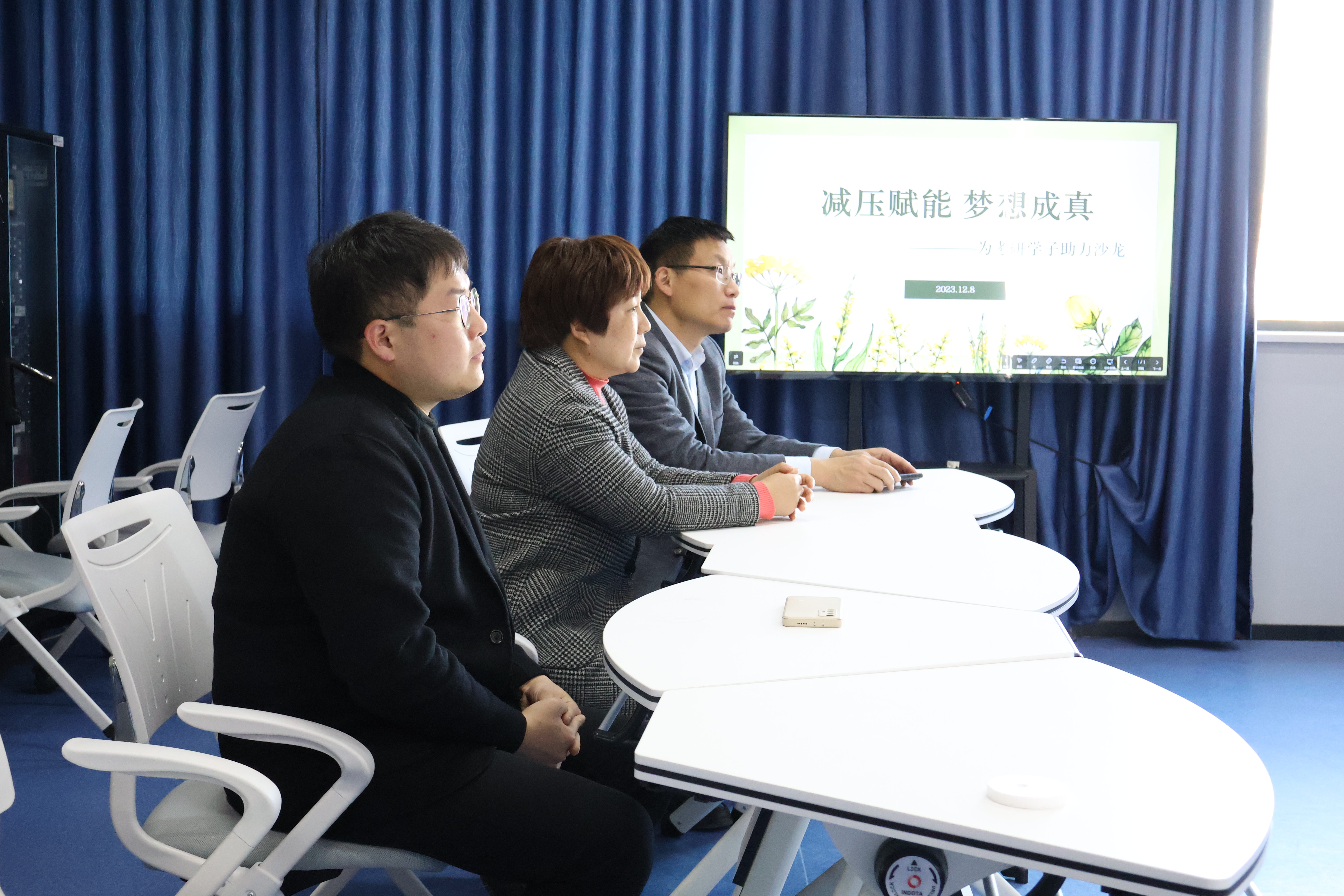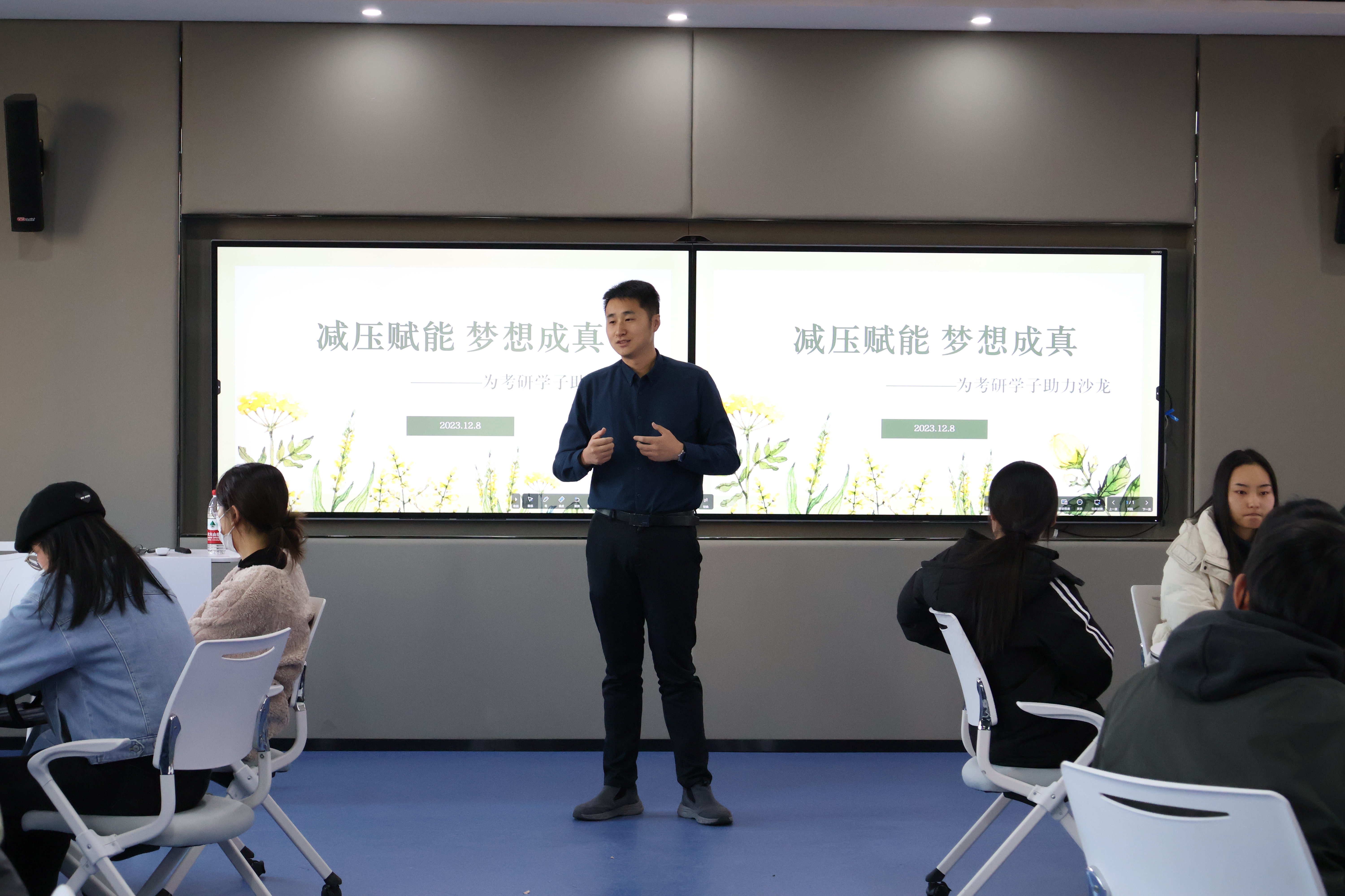 研究生入學(xué)考試將近,我院于2023年12月8日在W1708開展了以“減壓賦能,夢想成真——為考研學(xué)子助力沙龍”為主題的本科學(xué)生黨支部黨日活動。本活動旨在幫助考研學(xué)子緩解心理焦慮,為其提供必要的指導(dǎo)與鼓勵,保障他們在考研道路上更加順利。此次活動由心理中心蔡亞敏老師主持,本科學(xué)生第一、第二黨支部黨員參與。學(xué)院黨委書記管春英,黨委副書記劉茂燦,副院長黃海,輔導(dǎo)員劉爽和張亞東出席此次活動。
