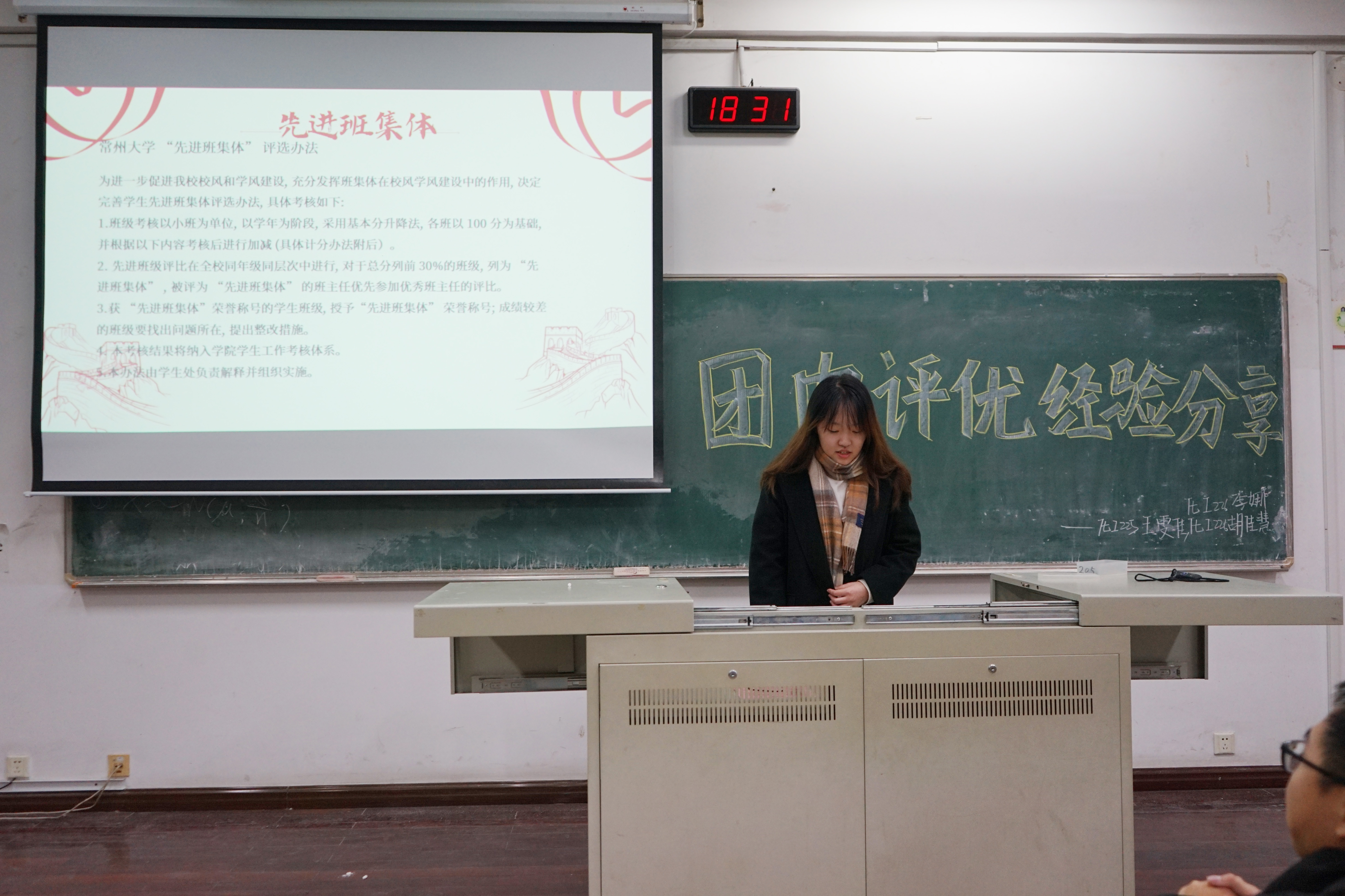 為充分發(fā)揮優(yōu)秀團(tuán)員的榜樣作用,提高廣大團(tuán)員的思想覺悟,激發(fā)積極性和創(chuàng)造性,我院于12月26日在w1205舉辦“石化青年說”系列講座——團(tuán)內(nèi)評優(yōu)經(jīng)驗分享。本次講座由化工225班王雯佳、化工226班胡佳慧、李娜主講,各年級學(xué)生代表參加。