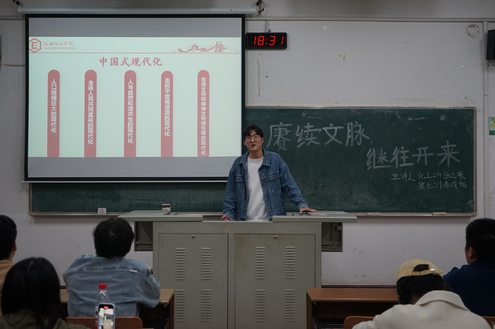 李成旭向同學們介紹了近現(xiàn)代中國現(xiàn)代化進程與歷史、改革開放后中國現(xiàn)代化問題的提出,使同學們明確了黨的十八大以后中國式現(xiàn)代化的發(fā)展目標。張志豪從傳統(tǒng)節(jié)日、六大建筑派系、傳統(tǒng)文化遺產(chǎn)著手,帶領同學領略了傳統(tǒng)文化的魅力,同時強調了傳承傳統(tǒng)文化的重要性和必要性。望我院的學生通過此次講座能夠結合所學專業(yè),利用所學知識,推動傳統(tǒng)文化的傳承與創(chuàng)新,堅定文化自信,為中國式現(xiàn)代化的推進作出獨屬于大學生的特別貢獻。