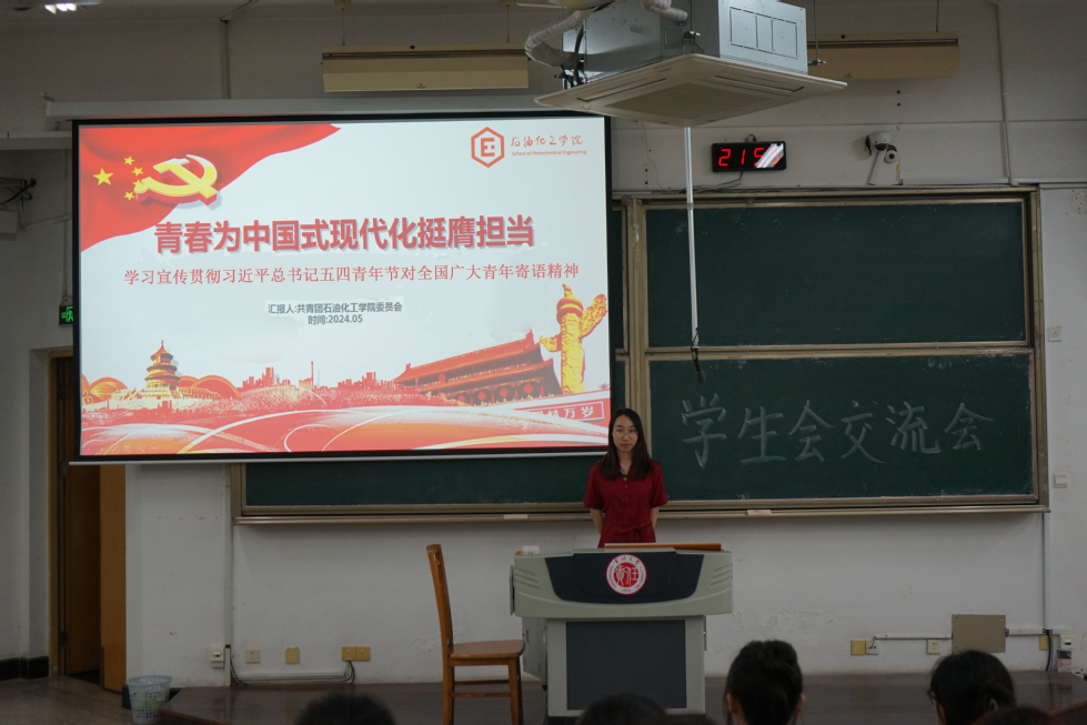 為深入學(xué)習(xí)宣傳貫徹習(xí)近平總書記五四青年節(jié)對全國廣大青年寄語精神,深刻感悟理解以習(xí)近平同志為核心的黨中央對青年和青年工作一以貫之的重視和關(guān)懷,激勵同學(xué)們勇?lián)鷷r(shí)代使命,不負(fù)韶華。院團(tuán)委學(xué)生會成員于5月22日在W15開展學(xué)習(xí)交流會。本次活動由石化院團(tuán)委副書記周袁心儀主持,團(tuán)委學(xué)生會各級學(xué)生骨干積極參與。