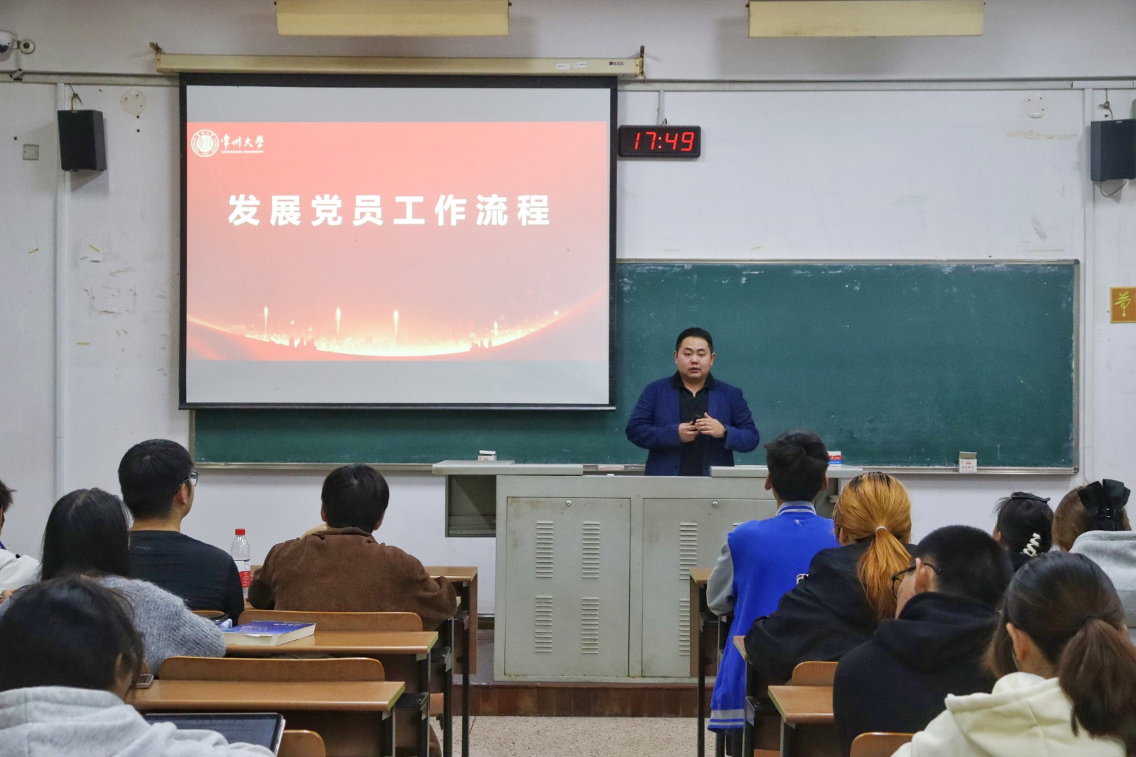 黨委組織部、黨委統(tǒng)戰(zhàn)部李彥杰以《發(fā)展黨員工作流程》為題為學(xué)員們授課