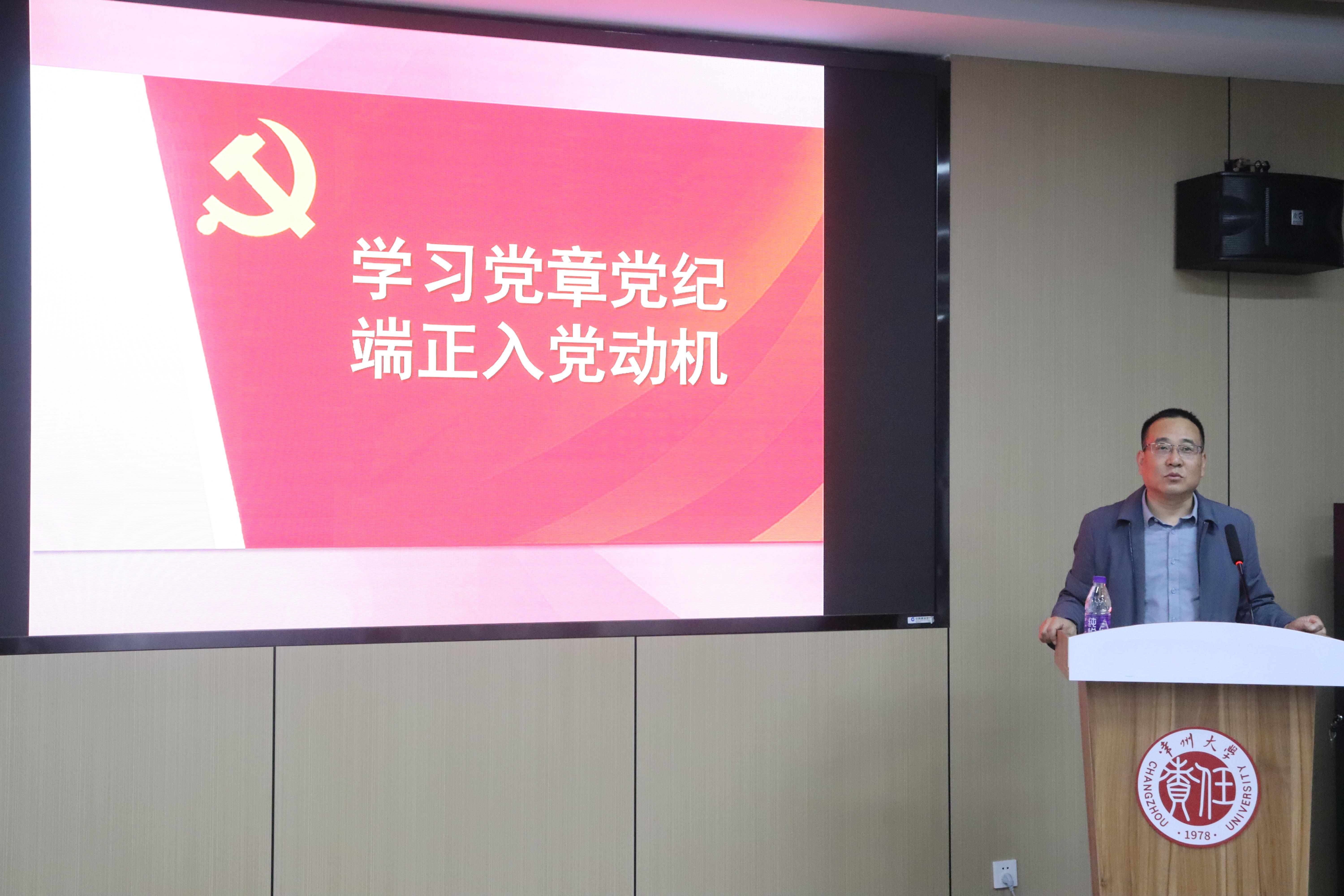 石油化工學(xué)院黨委書記業(yè)緒華以《學(xué)習(xí)黨章黨紀(jì),端正入黨動(dòng)機(jī)》為題為學(xué)員們授課
