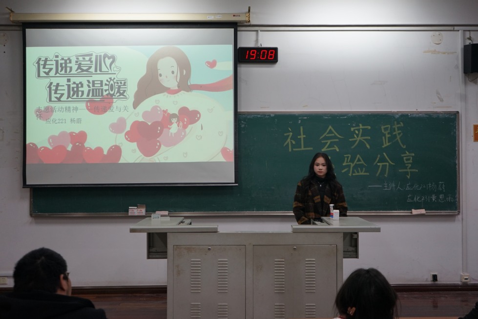 為了增強(qiáng)學(xué)生對社會實(shí)踐的興趣,培養(yǎng)學(xué)生無私奉獻(xiàn)、關(guān)愛他人的精神,我院于11月19日在W1209開展“石化青年說”系列講座第三講——社會實(shí)踐經(jīng)驗(yàn)分享。本次講座由應(yīng)化221楊蔚、應(yīng)化231黃思雨主講,我院學(xué)生代表參加。