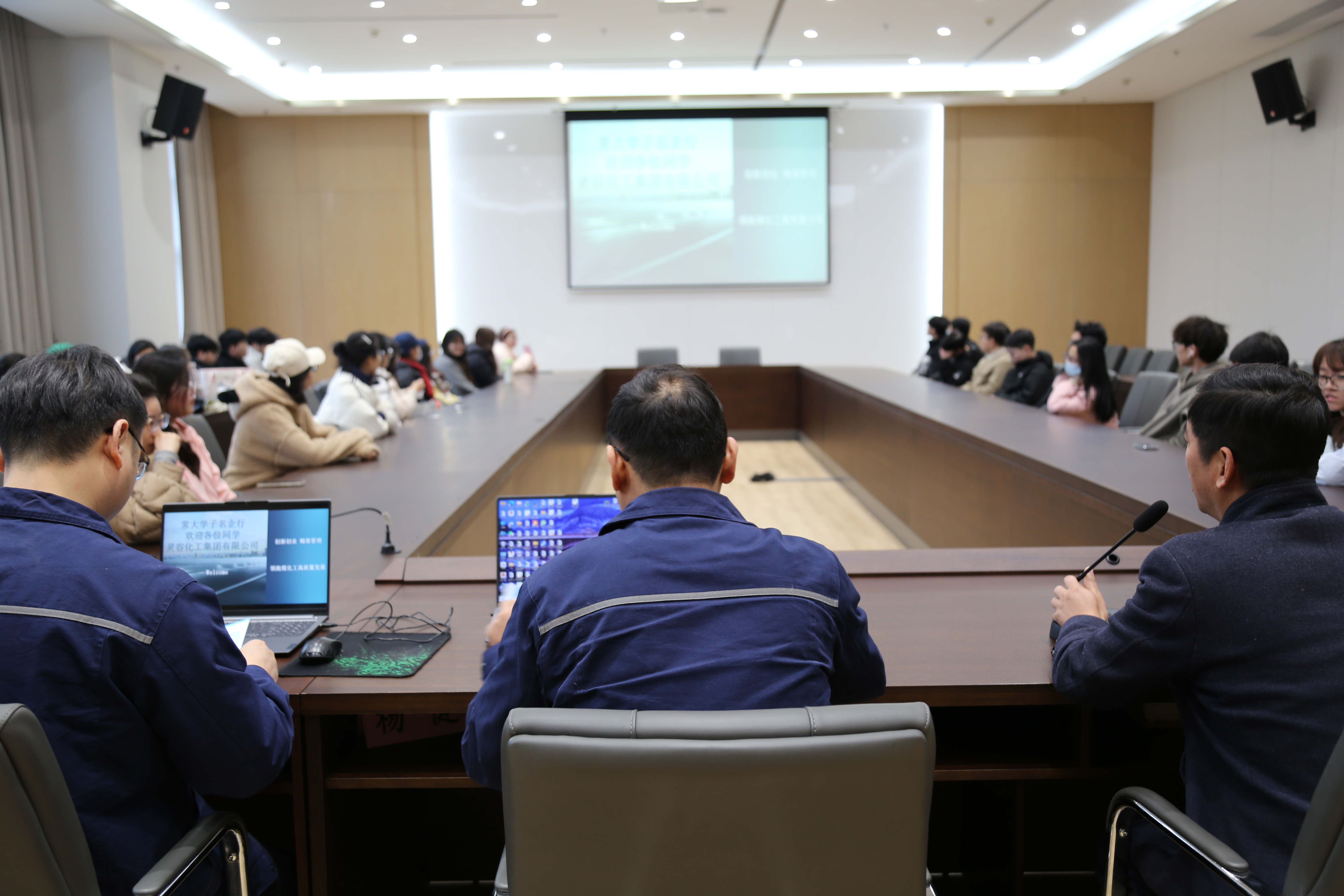 會后,師生一行參觀了企業(yè)園區(qū)和集中控制大廳,通過技術人員現(xiàn)場講解DCS智能控制系統(tǒng)、生產(chǎn)工藝全流程,學生們直觀了解代化工生產(chǎn)體系運行模式和智能化轉(zhuǎn)型實踐。
