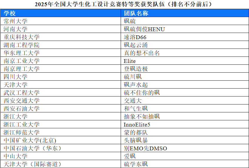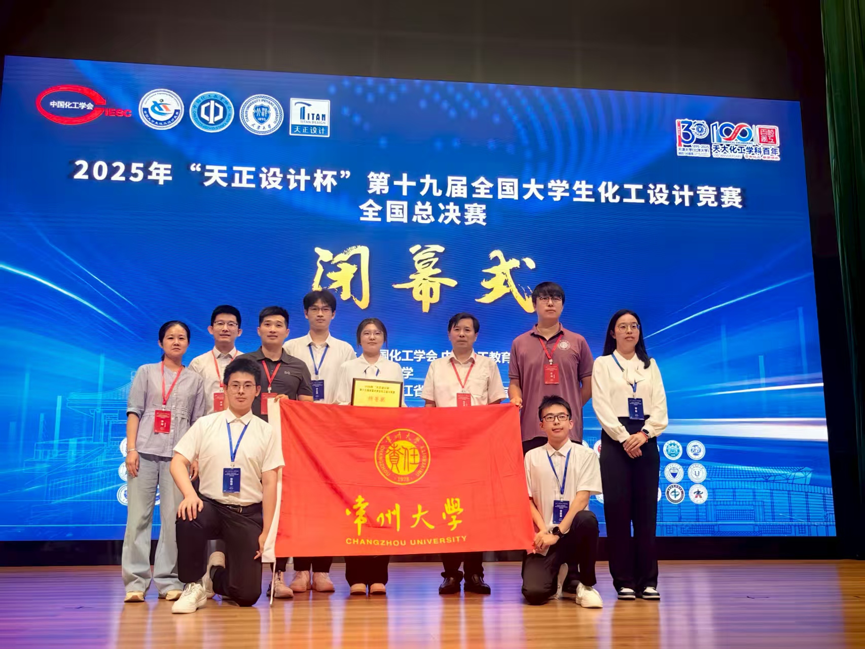 8月11日至8月17日,2025年“天正設(shè)計杯”第十九屆全國大學生化工設(shè)計競賽總決賽在天津大學舉行。常州大學石油化工學院砜硫隊作品《福建凱美特年產(chǎn)1.5萬噸二甲基亞砜項目》(參賽隊員:常佩源、張皓博、許正梁、薛晴、謝露;指導老師:石劍、馬江權(quán)、謝德華、周滿、黎珊)經(jīng)過江蘇省省賽、華東賽區(qū)選拔賽以及全國總決賽的激烈角逐,斬獲第十九屆全國大學生化工設(shè)計競賽特等獎。