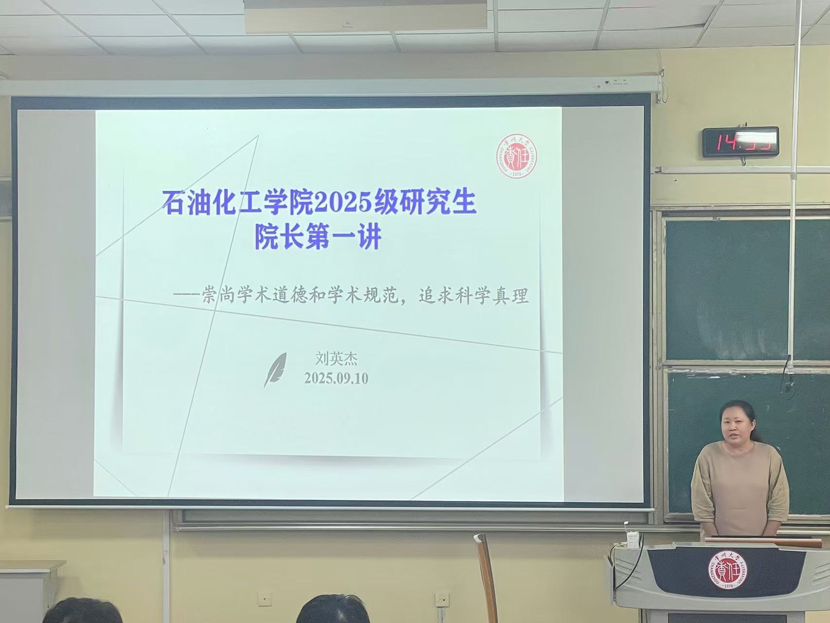 隨后,學院副院長劉英杰開展了“院長第一講”,她結(jié)合典型案例,介紹了學術(shù)造假、學術(shù)剽竊、隱匿學術(shù)事實、虛假學術(shù)宣傳、學術(shù)侵權(quán)和不守科研倫理規(guī)范等六類常見學術(shù)不端行為,教育引導研究生遵守科研工作規(guī)范、積極營造風清氣正的學術(shù)氛圍,培育優(yōu)良校風學風。
