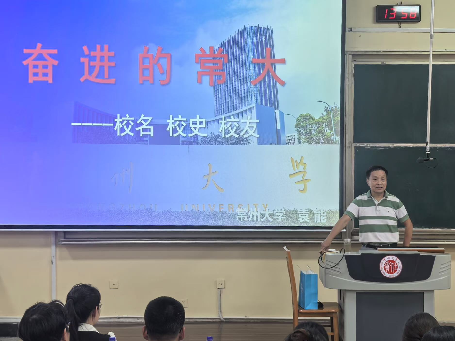 為幫助2025級研究生新生深入了解常州大學悠久的歷史和深厚的文化,增強認同感與歸屬感,我院于9月12日下午14:00在W7階梯教室開展校史校情教育大會。本次大會由研究生輔導員趙彩霞主持,我校關(guān)工委副主任袁能擔任主講,全體研究生新生參會。