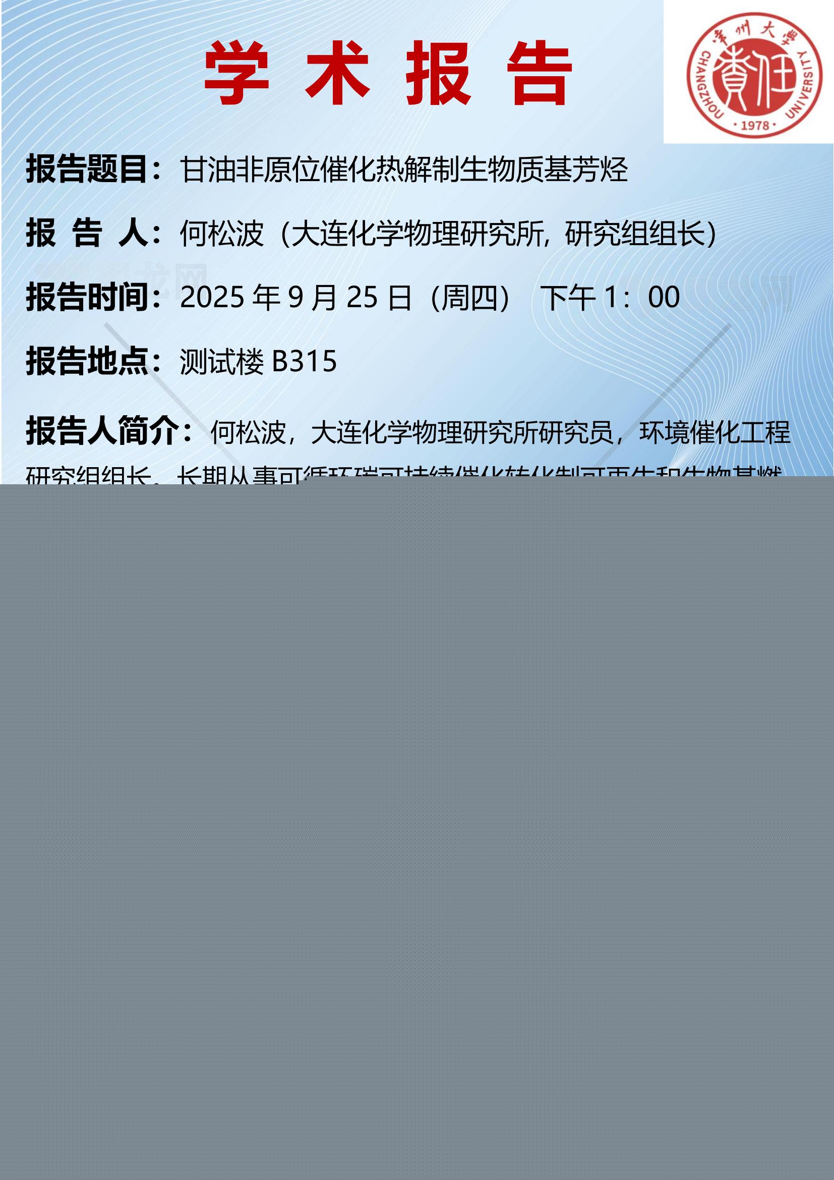 【學(xué)術(shù)報(bào)告】9月25日甘油非原位催化熱解制生物質(zhì)基芳烴