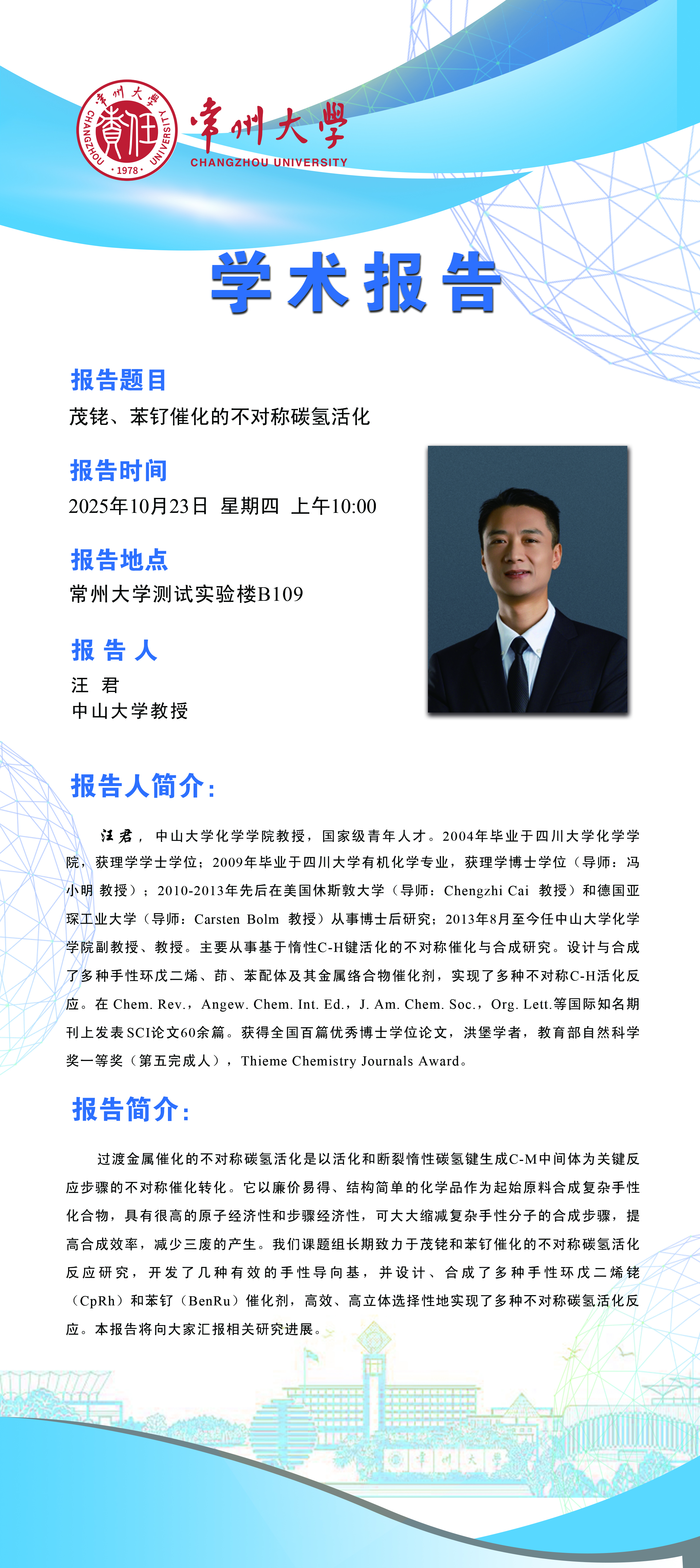 【學術(shù)報告】10月23日茂銠、苯釕催化的不對稱碳氫活化